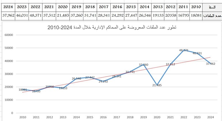تطور القضائية المعروضة على المحاكم الابتدائية الإدارية :